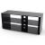 Black Glass TV Stand with Gloss Black supports for screens upto 60" Dimensions (mm): W1200 x D400 x H470 The usable depth of the middle and bottom shelves is 380mm. Maximum weight - Mid shelf 10Kg, Bottom shelf – 20Kg, Top shelf – 50Kg